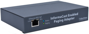 The CyberData InformaCast® Enabled Paging Adapter is for use with Singlewire's InformaCast paging and emergency notification software. The Paging Adapter provides a direct connection to legacy analog paging systems enabling InformaCast paging events to be broadcast.