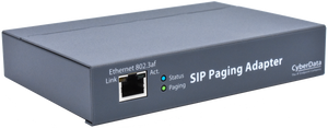 The SIP Paging Adapter is a VoIP endpoint that interfaces analog paging systems with SIP and Multicast-based audio sources. The SPA (SIP Paging Adapter) can be configured to support two separate SIP extensions. SIP extension one passes audio through to the analog output spoken from the caller's handset. When called, SIP extension two plays a bell audio that can be used as a night ringer when configured in a night ring group.