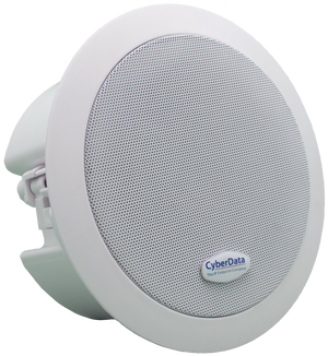 The CyberData InformaCast Enabled Ceiling Speaker is an economical Power-over-Ethernet (PoE 802.3af) and Voice-over-IP (VoIP) public address product that plays InformaCast and multicast messages. It easily connects to your PoE network with a single Ethernet cable connection. The device's small footprint allows the speaker to be discreetly mounted in your ceilings.