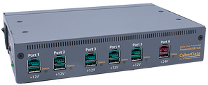 The PoweredUSB hub allows the OEM to add PoweredUSB technology to their existing products. Power to the ports is controlled by an exclusive CyberData peripheral power saving function that let's the PC control the power to the Hub by means of the Windows Sleep or standby function. The CyberData PoweredUSB 6-Port Hub provides a simple and affordable way to add up to six PoweredUSB ports to a standard PC. The hub offers one +24 volt port with ample current available for a multi-station POS printer and five +12 volt ports.